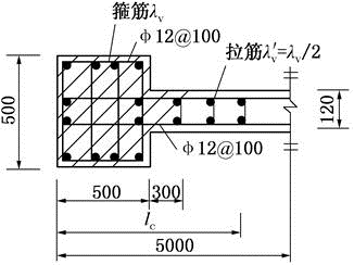 某8度、二级抗震设计的剪力墙底部加强部位如图所示,材料选用如下:混凝土为C40,端柱纵筋用HRB335,分布筋为HPB3
