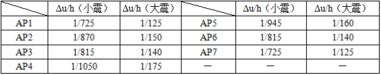 假定,正确选用的7条时程曲线分别为:AP1~AP7,由同一软件计算所得的第k层结构的层间位移角(同一层)见表。试问,估算的大震下该层的弹塑性层间位移角参考值最接近下列何项数值?( )