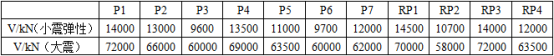 该结构性能化设计时,需要进行弹塑性动力时程分析补充计算,现有7条实际地震记录加速度时程曲线P1~P7和4组人工模拟加速度时程曲线RP1~RP4,假定,任意7条实际记录地震波及人工波的平均地震影响系数曲线与振型分解反应谱法所采用的地震影响系数曲线在统计意义上相符,各条时程曲线由同一软件计算所得的结构底部剪力见表。试问,进行弹塑性动力时程分析时,选用下列哪一组地震波最为合理?( )