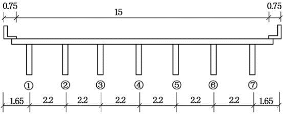 某7片主梁预应力混凝土T梁桥,主梁布置如图所示。设计荷载为公路—Ⅰ级。