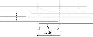 1.若纵向受拉钢筋采用绑扎搭接接头,接头方式如图所示,则纵向受力钢筋最小搭接长度ll(mm)与下列( )项数值最为接近。