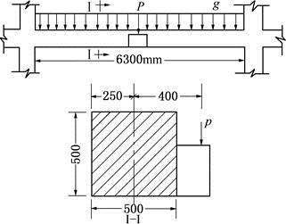 某钢筋混凝土矩形截面梁如图,截面尺寸为500mm×500mm,计算跨度l0为6.3m,跨中有一短挑梁(见图),挑梁上作用