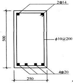 某混凝土单筋矩形截面简支梁,截面尺寸和配筋如图所示,采用C30混凝土,HRB335纵筋,环境类别为二a类。