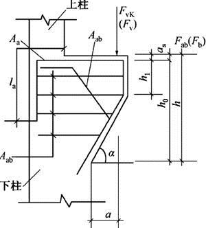 支承屋面梁的柱牛腿,如图所示,宽度b=400mm,屋架在牛腿上的支承长度为200mm,竖向力作用点到下柱边缘的水平距离a=300mm(已考虑安装偏差20mm),外边缘高h1=h/3(h为牛腿高度),牛腿底面倾斜角α=45°。作用在牛腿顶部按荷载效应标准组合计算的竖向力Fvk=450kN,竖向力的设计值Fv=580kN,同时作用在牛腿顶部按荷载效应标准组合计算的水平拉力Fhk=120kN,水平拉力的设计值Fh=168kN,混凝土强度等级采用C30,钢筋HRB335级,as=40mm,箍筋为HPB300级钢筋。
