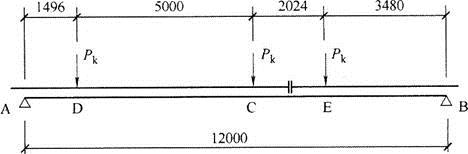 1.假定,计算吊车梁最大弯矩时,两台吊车轮压作用位置如图所示。试问,仅考虑竖向轮压(最大轮压标准值)的作用,吊车梁最大弯矩标准值Mkmax(kN·m)与下列何项数值最为接近?( )