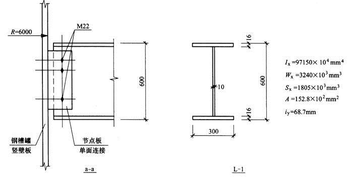 由于生产需要,两个钢槽罐间需增设钢平台,γ0=1.0,钢材采用Q235钢,焊条采用E43型。钢平台布置如图所示,图中标注