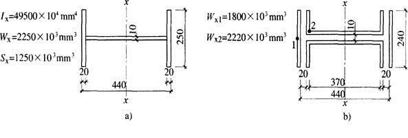 某车间起重机梁端部车挡采用焊接工字形截面,钢材采用Q235B钢,车挡截面特性如图所示。作用于车挡上的起重机水平冲击力设计