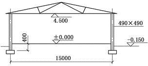 四面开敞的15m单跨敞棚,如图所示,有柱间支撑。承重砖柱截面为490×490(mm),采用MU10烧结普通砖,M5水泥砂