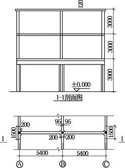 某三层商住楼,底层局部采用两跨连续墙梁结构。局部平面图及剖面如图所示。开间为3.3m,底层层高3.9m,其余两层为3.0