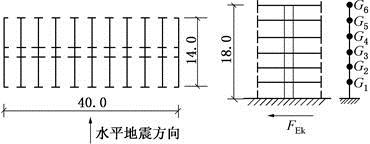 一幢6层砌体房屋,其平面及剖面图如图所示。抗震设防烈度为8度(0.2g),每层建筑结构自重标准值为16kN/m2(包括墙体及楼面结构自重),楼面活荷载标准值为2.0kN/m2,屋面活荷载标准值为0.5kN/m2。采用底部剪力法计算水平地震作用,由此可算得该房屋的底部总水平地震作用标准值FEk(kN)与下列何项数值最为接近?( )