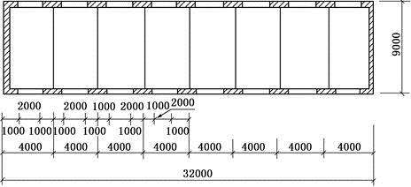 某跨度9m,开间4m的单层单跨砌体结构(见图),总长32m,承重纵墙厚370mm,采用MU15普通砖,M5水泥砂浆砌筑,