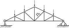 如图所示的原木屋架,设计使用年限为50年,选用红皮云杉TC13B制作。 2.在荷载效应的基本组合下,D3杆轴心压力设计值
