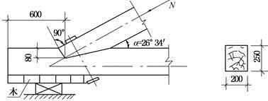 单选题 如图所示,设计使用年限为50年的方木屋架端节点,上弦杆轴力设计值(基本组合)N=-128.8kN。该屋架用水曲柳
