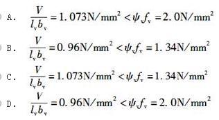 单选题 如图所示,设计使用年限为50年的方木屋架端节点,上弦杆轴力设计值(基本组合)N=-128.8kN。该屋架用水曲柳制作。当用木材单齿连接受剪承载力公式