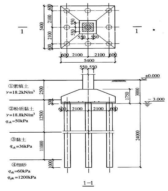 某建筑物设计使用年限为50年,地基基础设计等级为乙级,柱下桩基础采用九根泥浆护壁钻孔灌注桩,桩直径d=600mm,为提高