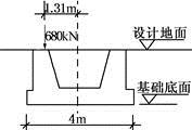 某建筑物基础如图所示,基础埋深为2m,底面尺寸为4m×2m。在设计地面标高处有偏心荷载680kN,偏心距1.31m。则基