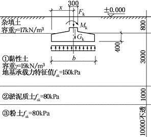 某钢筋混凝土条形基础底面宽度为b,埋置深度为1.2m。取条形基础长度1m计算,其上部结构传至基础顶面处的标准组合值:竖向