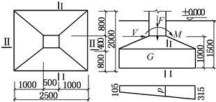 某基础承受上部结构传递的F、M、V等荷载作用。基础自重设计值和基础上的土重设计值为G=155kN,已知计算出基础底面边缘的最大和最小压力设计值分别为pmax=315kN/m2和pmin=105kN/m2,如图所示。