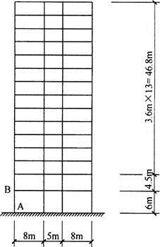 5.假定,方案调整后,该结构中部未加剪力墙的某一榀框架如图6-7所示(地下部分未示出),框架抗震等级为二级。作用在底层边柱AB底截面A处的考虑地震作用组合的弯矩设计值MA=580kN·m,剪力计算值VA=230kN。按式