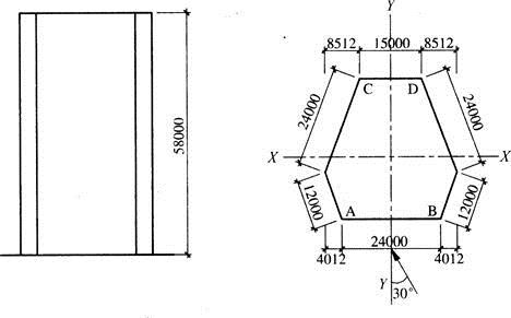 某15层框架一剪力墙结构,其平立面示意如图所示,质量和刚度沿竖向分布均匀,对风荷载不敏感,房屋高度58m,首层层高5m,