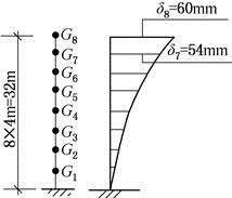 一幢8层的钢筋混凝土框架结构,在设防烈度8度(0.2g)多遇地震的水平地震作用下的水平位移如图所示。其顶层的弹性水平位移