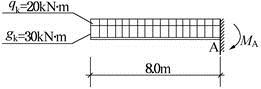 一商店建筑中有一挑出长度为8m的长悬挑梁,梁上作用着永久荷载标准值的线荷载gk=30kN/m,楼面活荷载标准值的线荷载q