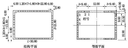 某矩形框筒,平面尺寸如图所示,总高度102m,承受水平力q=20kN/m,框筒截面可简化成双槽形截面,该截面如图6-38