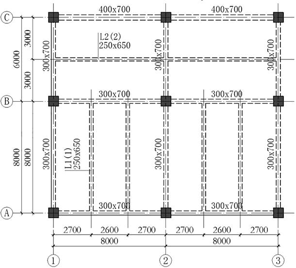 某多层教学楼采用现浇钢筋混凝土框架结构,局部平面图如图所示,该建筑的使用功能为教室。假定,梁、板的混凝土强度等级为C30,钢筋采用HRB400,楼板厚度为100