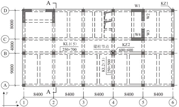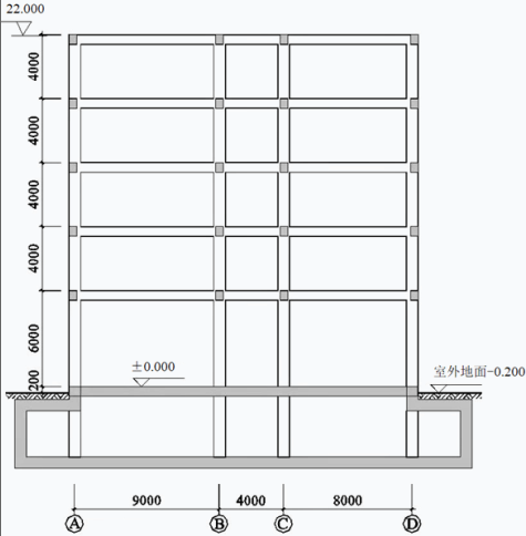 某房屋采用现浇钢筋混凝土框架-抗震墙结构,上部各层平面及剖面图如所示。该房屋所在地区抗震设防烈度为7度,设计基本地震加速