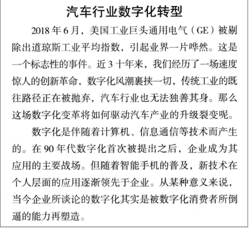 问答题 编辑加工题:阅读分析短稿,并按照稿件加工整理的规范进行编辑加工。 汽车行业数字化转型 2018年6月,美国工业巨