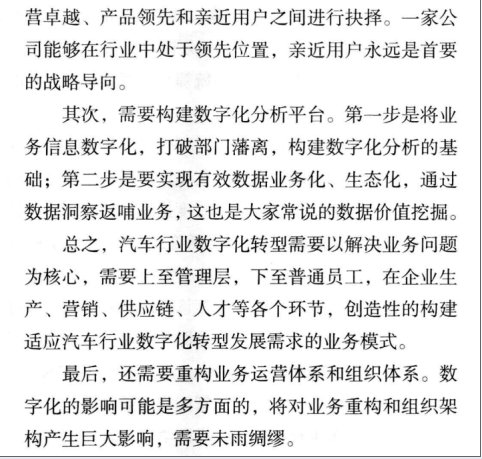 总之,汽车行业数字化转型需要以解决业务问题为核心,需要上至管理层,下至普通员工,在企业生产、营销、供应链、人才等各个环节,创造性的构建适应汽车行业数字化转型发展需求的业务模式。