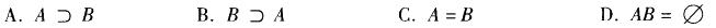 单项选择题 检验两件产品,记事件A: “两次结果相同”,事件B:“两次结果不同”,则A与B之间的关系是( )。