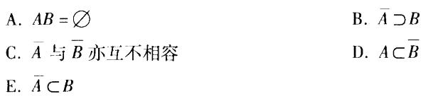 多项选择题 若事件A与B互不相容,则( )。
