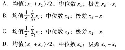 单项选择题 从某总体中随机抽出5个样本,观测值分别为x1,x2,x3 ,x4,X5,从小到大依次排列为x1,x5,x4,x3,X2,则均值、极差和中位数分别为( )。