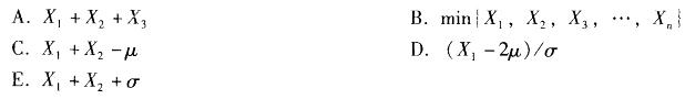 多项选择题 从均值为μ、方差为σ2的总体中抽得一个容量为n的样本X1,X2,…,Xn,其中μ已知,σ2未知,下列各项属于统计量的有( )。