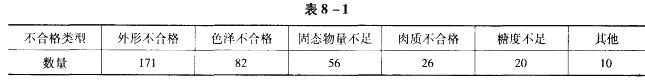 单项选择题 某食品加工厂7月份生产的罐头产品中有358瓶不合格,对其不合格的类型和数量进行了统计,统计结果如表8-1所示