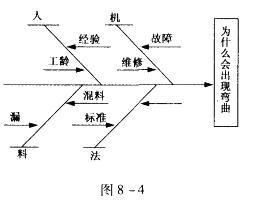 有个组员先绘制了一张因果图,如图8-4所示,大家讨论后发现该图存在问题,具体是( )。