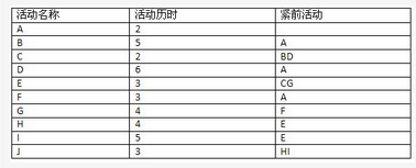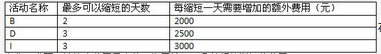 关键路线:ADCEIJ总工期:21天2、E在关键路线上,它的总时差、自由时差均是0天;G的总时差、自由时差均是1天。 [问题 2]由于题目中给出限制,“只有活动B、D、I有可能缩短工期”,在费用最少的工期压缩方案为:D缩短1天,I缩短1天;额外增加的费用为5500元