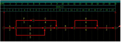 下图为D活动压缩1天、I活动压缩1天后,关键路径发生改变后最新的关键路径