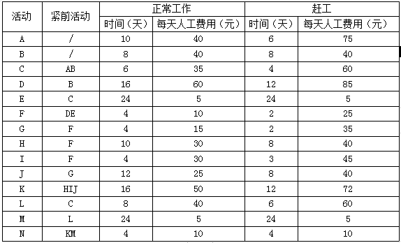 【问题1】(1)关键路经为:ACEFGJKN,工期:80。