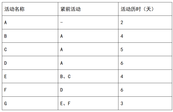 某项目包含A、B、C、D、E、F、G七个活动,各活动的历时估算和逻辑关系如下表所示,则活动C的总浮动时间是( )天。