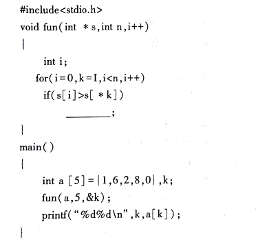 以下程序调用fun函数求数组最大值所在元素的下标 横线处应该填入的内容是()。