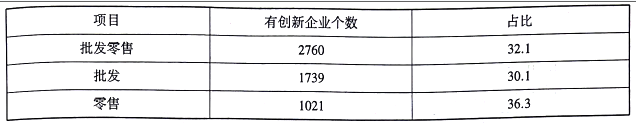 表1 批发零售业有创新企业个数及占比 单位:个:%