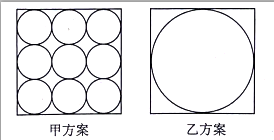 国庆节布置花景,其中一个区域为一个正方形。花卉公司有两套方案(如下图所示),甲方案中,摆放 9 个圆形花柱,其余部分用草