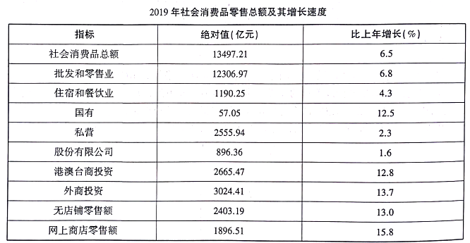 全年实现社会消费品零售总额 13497.21 亿元,比上年增长 6.5%。其中,无店铺零售额 2403.19 亿元,增长 13.0%。网上商店零售额 1896.51 亿元,增长 15.8%,占社会消费品零售总额的比重为 14.1%。