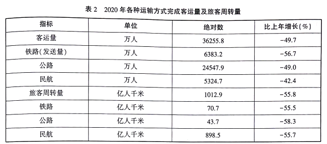 表12020年各种运输方式完成货运量及货物周转量
