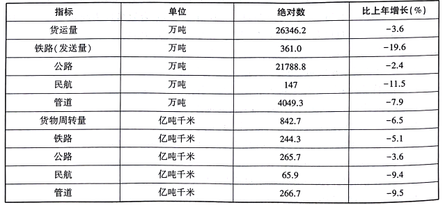 表12020年各种运输方式完成货运量及货物周转量