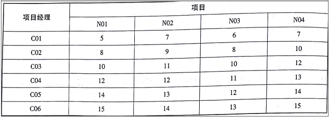 不定项选择题 有 6 名项目经理,编号是 C01~06,他们的能力不同,现有 4 个项目需要指派给其中 4 人单独负责,