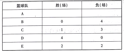 A、B、C、D、E五支篮球队进行小组单循环赛(每两个队之间赛一场)。循环赛结束之 后,各队的胜负情况如下表所示: 由此可