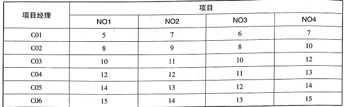 不定项选择题 有6名项目经理,编号是C01—06,他们的能力不同。现有4个项目需要指派给其中4人单独负责,即每人只负责一个项目,一个项目只能由一个人来做,他们各自单独完成4个项目的收益(单位:万元)如下表所示。